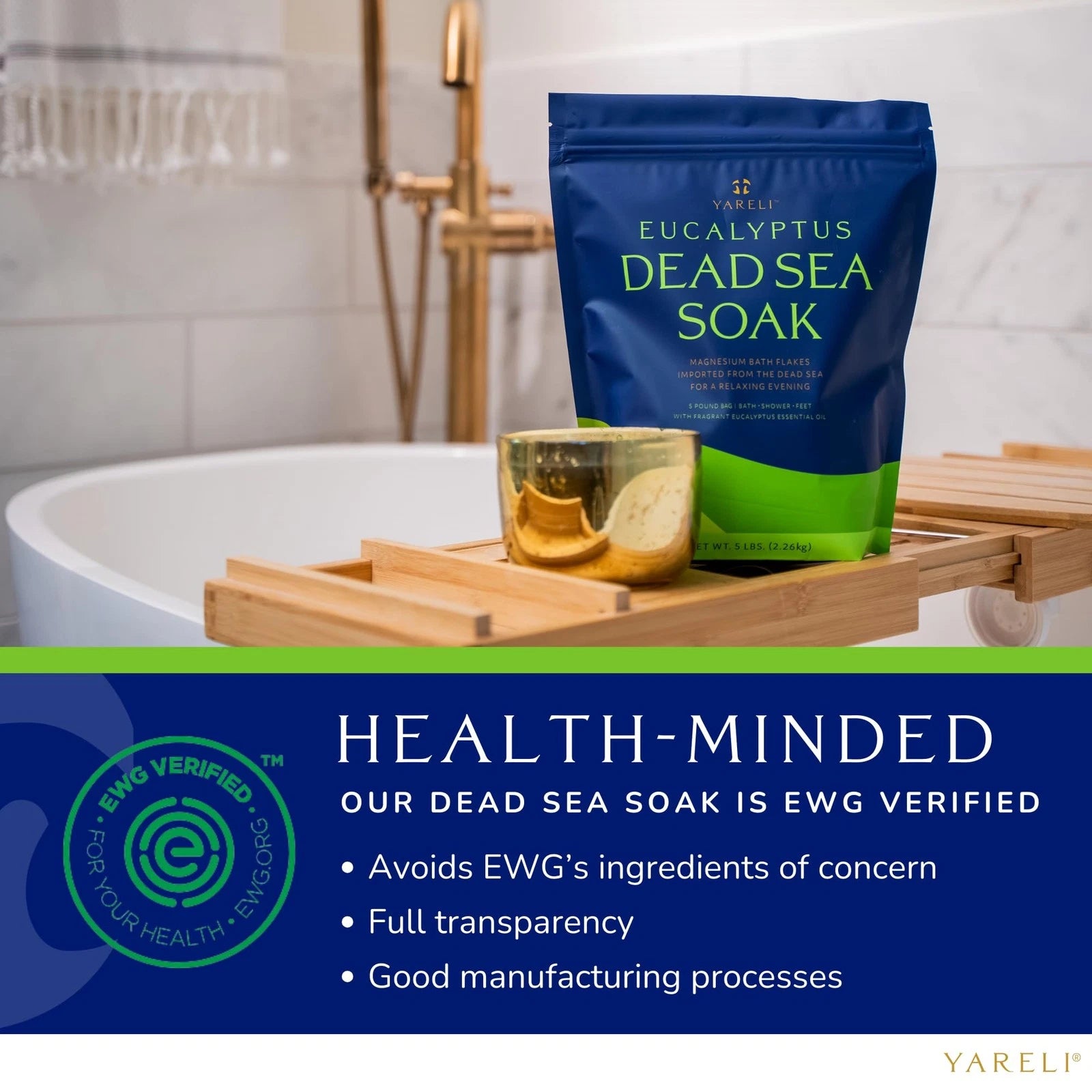 Harvested from the Dead Sea - Yareli's EWG VERIFIED pure magnesium chloride flakes are imported from the Dead Sea in Israel, a salt lake that people have visited for centuries for its renowned healing properties