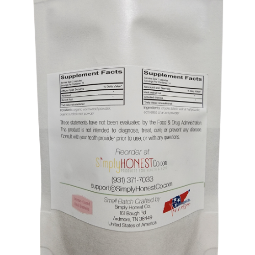 * Contains wormwood, burdock root, black walnut hulls and activated charcoal for an effective parasite cleanse