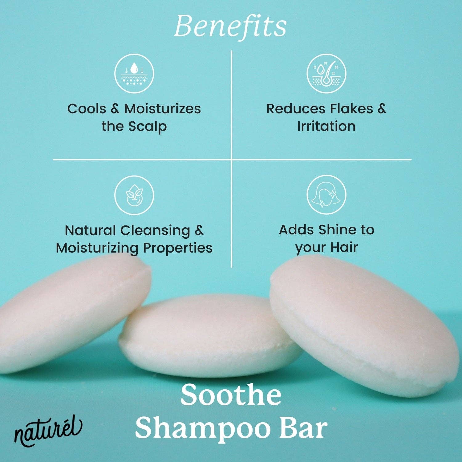 Our naturel SOOTHE scalp calming shampoo bar helps to hydrate dry or itchy scalps. Perfect for helping to reduce flakes and irritation or just to help strengthen hair. Added peppermint oil, tea tree oil, and lime oil all work to cleanse and moisturize your scalp. Better yet it smells delicious.
